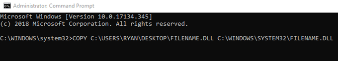 Now you can replace the bad file with the good version. You will need to copy the good file and paste it where the old one is. Type the following command: COPY
