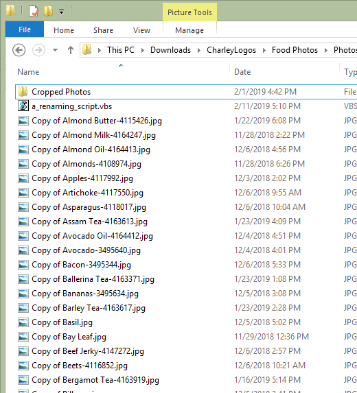 As an example, consider a case like in the example image above where you have a folder of hundreds of images each named **Copy of **and then a word or two, like Copy of Black Tea.jpg.
