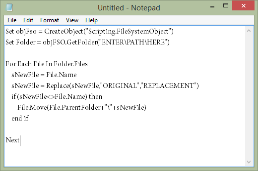 To do that, you need to change the text called **ENTER\PATH\HERE **to the exact folder where your soon-to-be-renamed files are located.