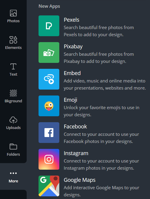 When you click on more, you will see the Canva apps.