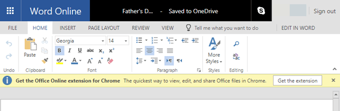 As you can see from below, the online version of Word doesn’t have all the tabs that the ribbon interface on the full version of Word has. It’s missing References and Mailings completely. Also, all the other tabs only have a few of the essential options, but the rest are missing. For most people, the free version is enough, but that’s why Microsoft has Office 365 subscriptions for those who need all the functionality.