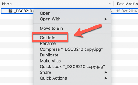 - Some of the more basic EXIF metadata is available by right-clicking an image and pressing Get Info to get started.