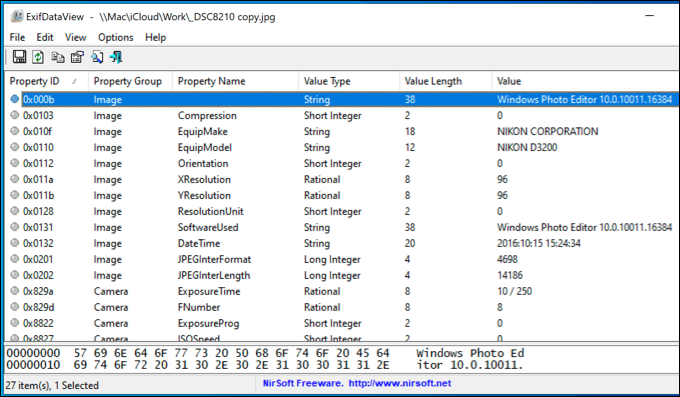 While Windows File Explorer should give you a good overview of EXIF metadata, you can also use third-party tools to view it in more depth. Many of these tools are now outdated for use on Windows, but one tool that still works well is ExifDataView.