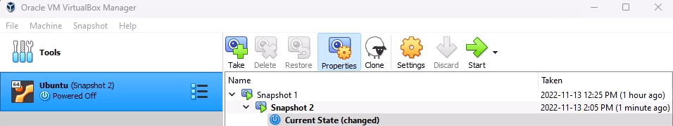 VirtualBox has several ways to take a snapshot. It can be done from within the guest window or the VirtualBox manager. Snapshots can be named, and VirtualBox organizes them chronologically. Rolling back to a previous time simply requires selecting the desired snapshot, selecting Restore, then starting the VM. VirtualBox is the clear winner regarding snapshots.