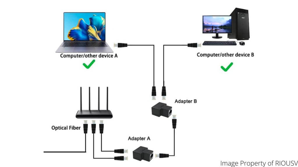There’s nothing exceptional about the RIOUSV cable splitter. Each unit has three RJ45 female ports on it, and you’ll need two, one on each end of the cable you’re splitting, making it all work.