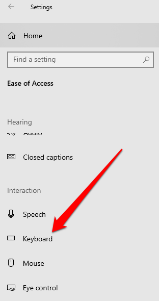 - Next, select **Keyboard** and find the **Use Filter Keys** option.