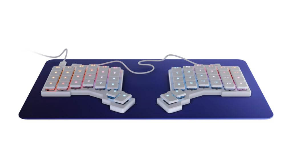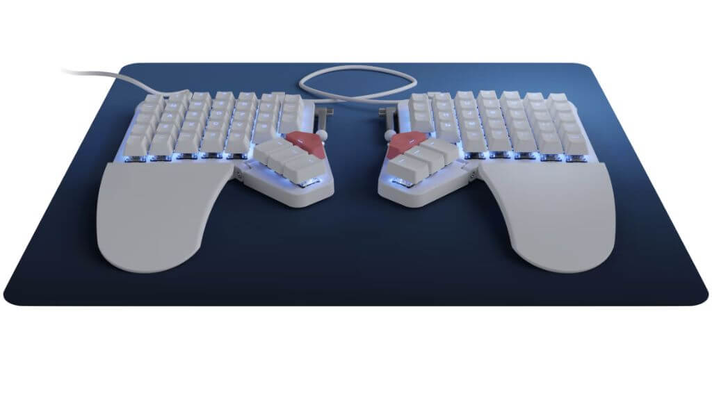 One complaint we’ve seen about ortholinear keyboards involves horizontal wrist angles. Because of the layout, some folks have to turn their wrists inward, and that’s not comfortable for everyone, which is why we’ve seen a rise in the popularity of split keyboards. Basically, you have two half keyboards joined by a cable. Keep this in mind as we look at real-world examples.