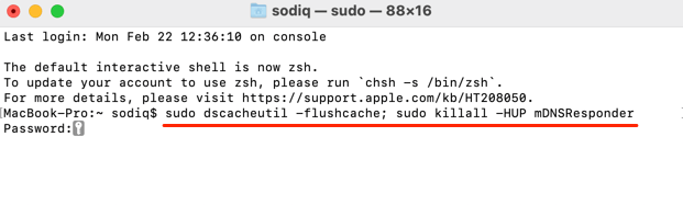 To clear the DNS cache on Mac, launch Terminal (go to Applications > Utilities > Terminal), paste the command below in the console, and press Return.