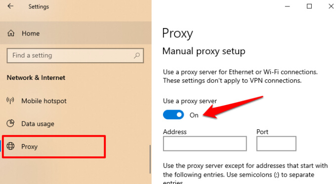 If you use a proxy on your computer, make sure the server settings are correct and properly configured. Go to Settings > Network & Internet > Proxy (for Windows) or System Preferences > Network > Advanced > Proxies (for macOS) to check for any manual proxy setup.