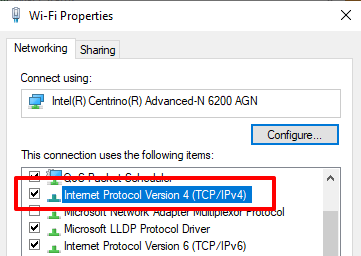 - In the “This connection uses the following items” section, double-click Internet Protocol Version 4 (TCP/IPv4).