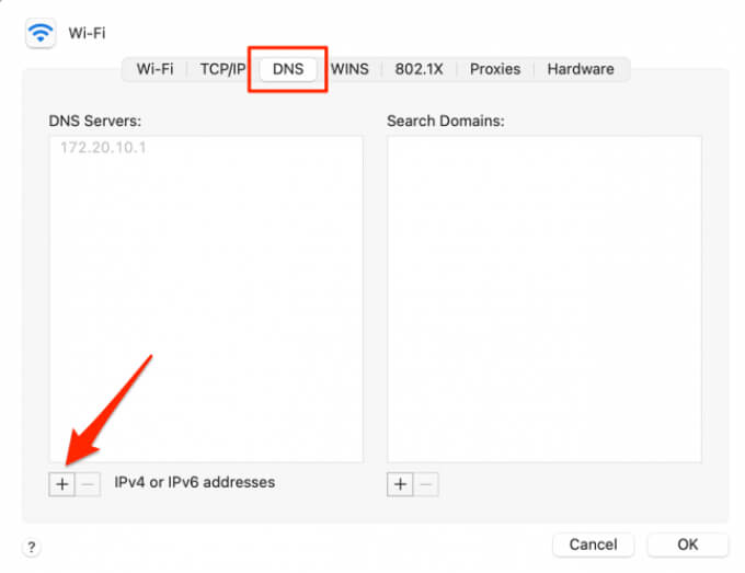 Go to the DNS tab and click the plus (+) icon at the button-left corner to add a new DNS server.