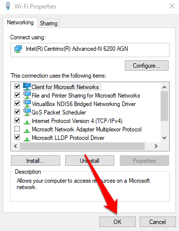 - Finally, click OK on the Wi-Fi/Ethernet Properties window to save the changes.