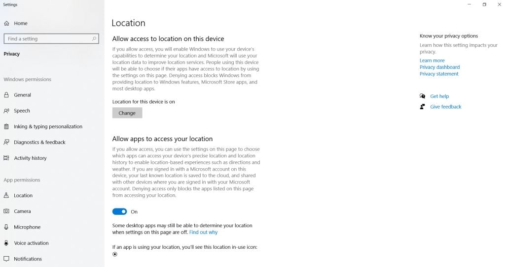 It’s important to keep your information safe, and this is especially true when using apps on your PC. The location privacy settings can help to ensure that only the programs you want to use location services actually are. The “your location is currently in use” icon is a helpful notification so you know exactly when an app is using these location services.