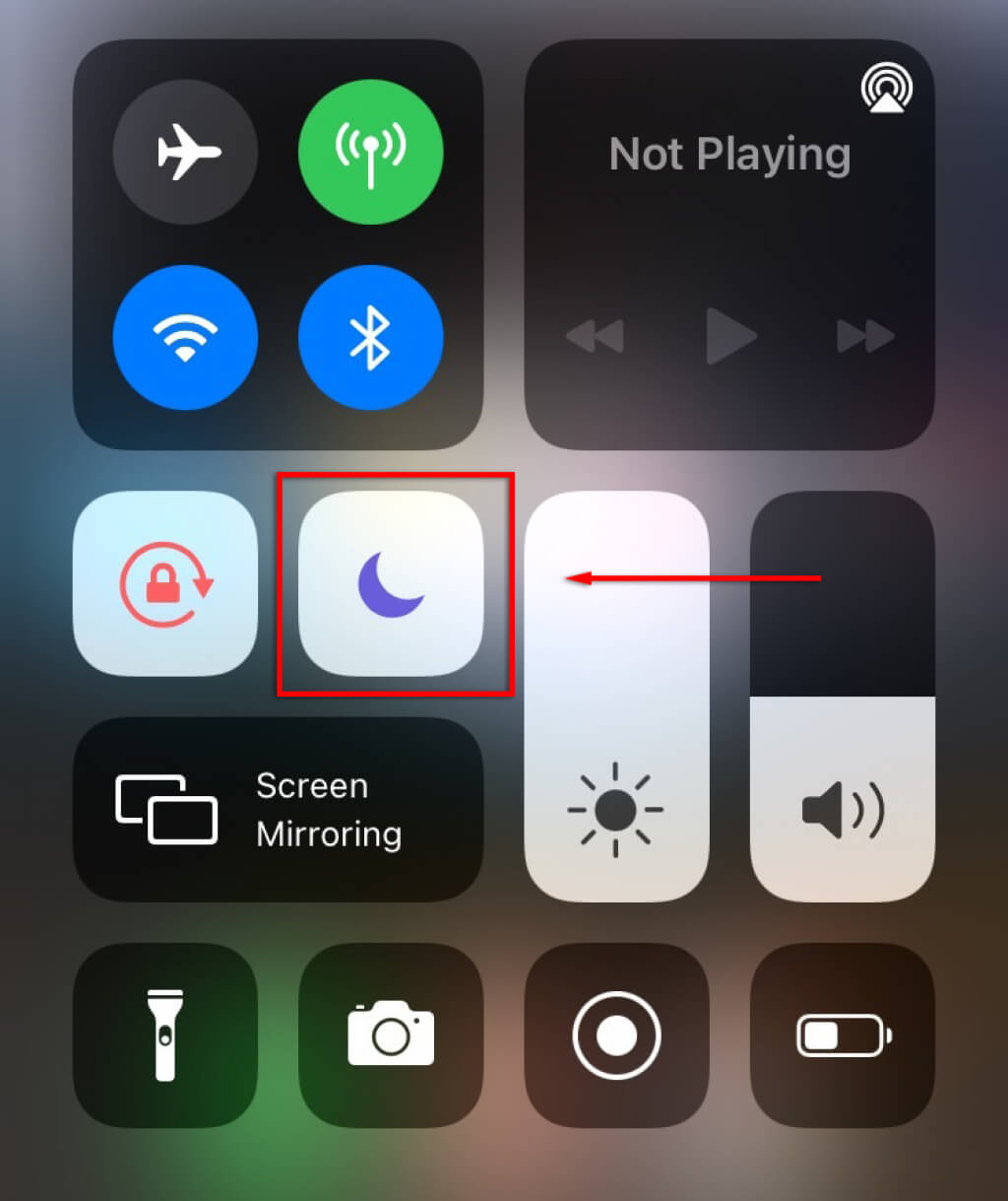 To turn on Do Not Disturb with an iPhone, open the Control Panel and tap the crescent moon icon. To access the customizable Control Panel with an iPhone X or later, swipe down from the top-right of the screen. If you’re using an earlier model, swipe up from the bottom of the screen.