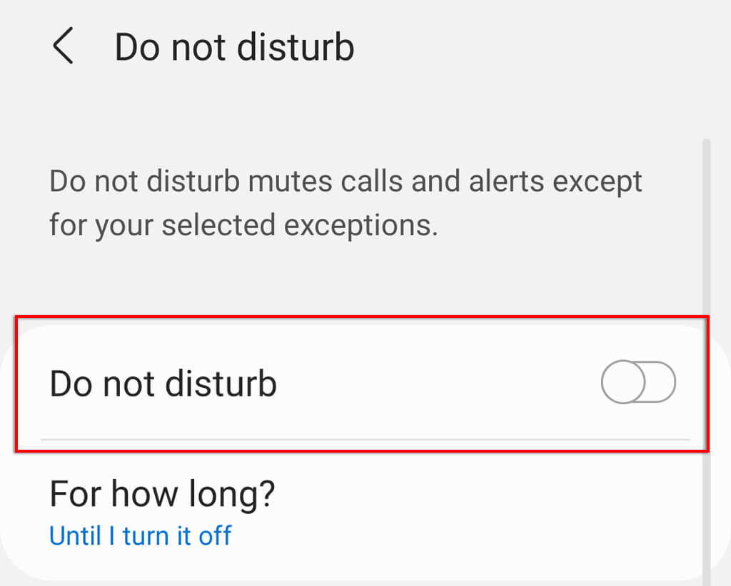 You can also turn it on from the settings app on either operating system. On iPhone, select Settings > Focus > Do Not Disturb. For Android, open Settings > Notifications > Do not disturb.
