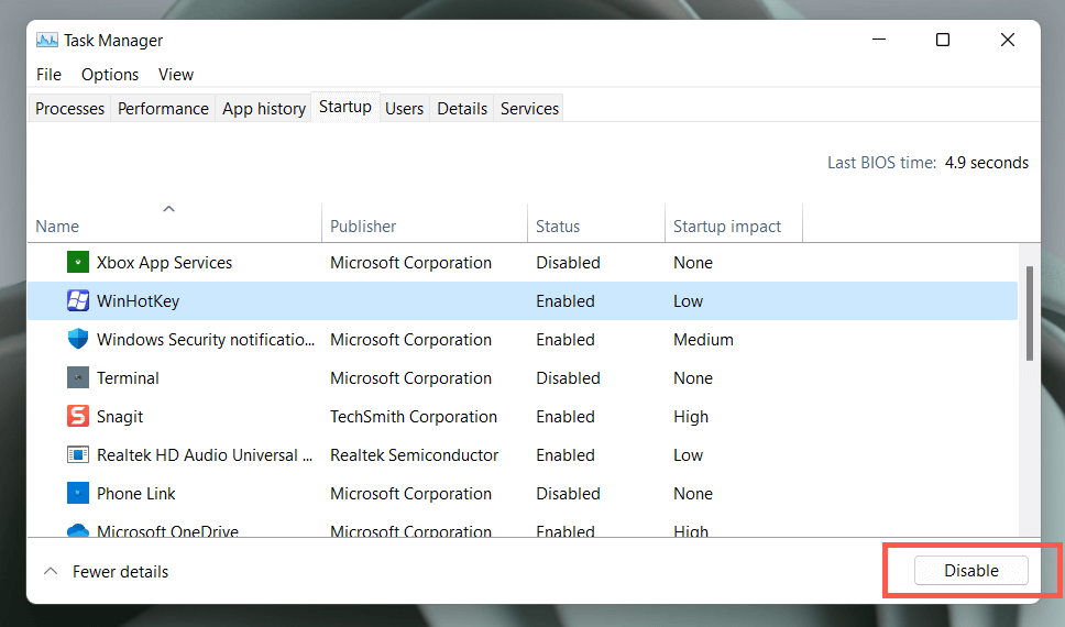 Adobe CEF Helper’s CPU usage can escalate due to conflicts with other third-party apps and services. To confirm, try clean booting Windows.