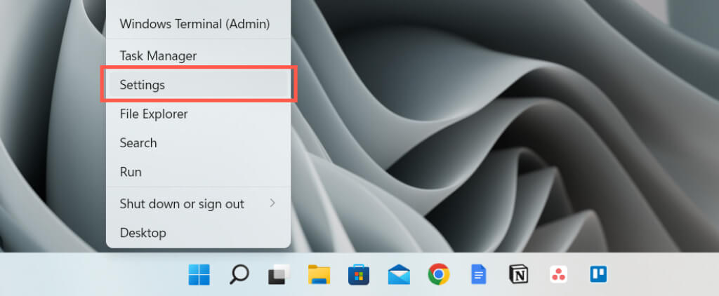 - Right-click the Start button and select Settings.
