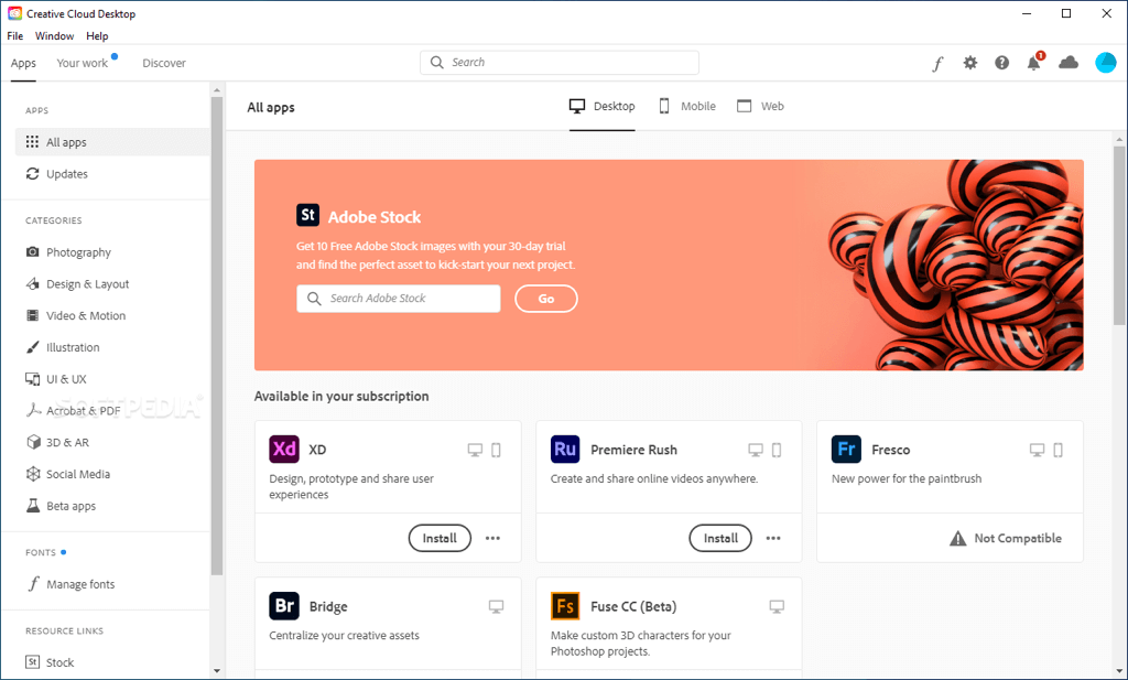 - Switch to the Apps tab in Creative Cloud Desktop.