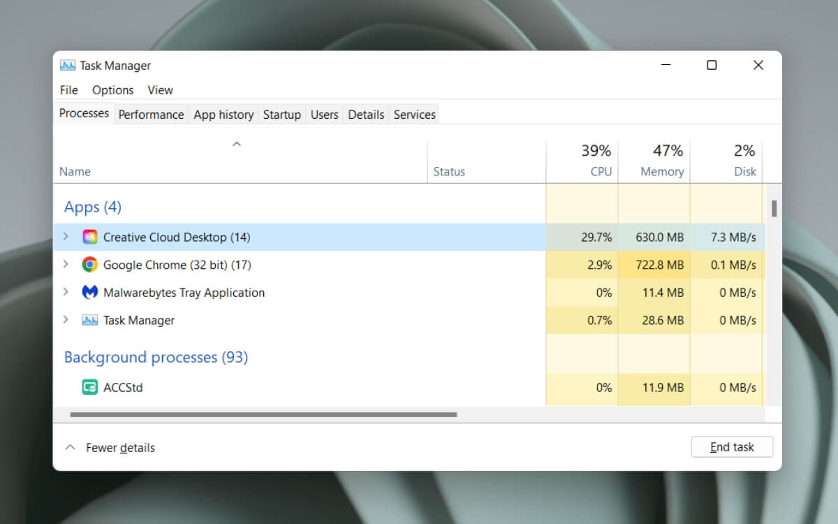 Since Creative Cloud Desktop runs automatically at startup, it’s normal for Adobe CEF Helper to show up within the Windows Task Manager. It’s also common for CPU usage to spike when Creative Cloud Desktop runs an active task, like installing an Adobe application or syncing a file with Adobe Creative Cloud. The same applies to other Adobe processes—e.g., CCXProcess, CCLibrary, and AdobeIPCBroker.