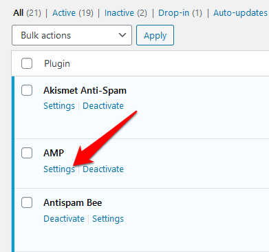 - Go to Plugins > Installed Plugins, find **AMP **and select the **Activate **link to activate the AMP plugin and make it work on your site.
