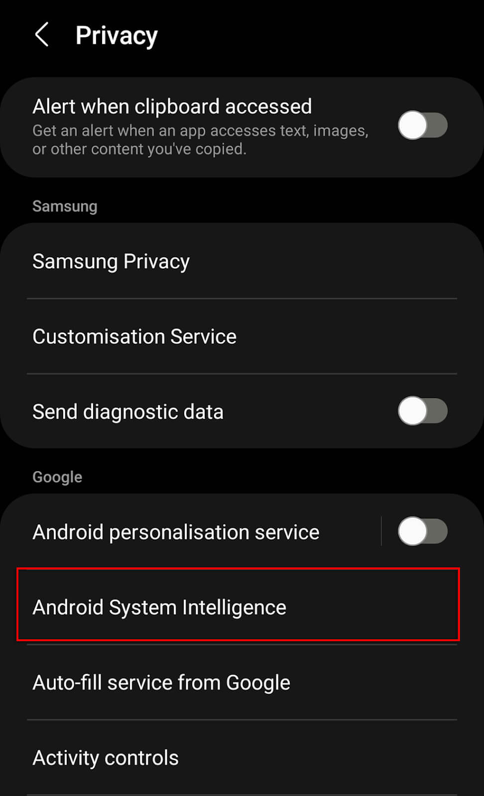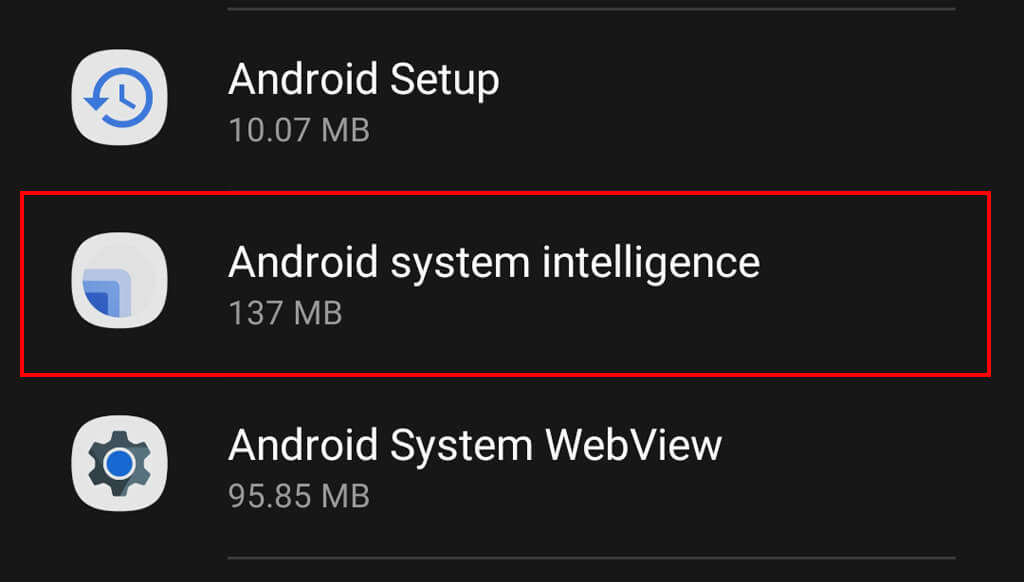 - Select Android System Intelligence.