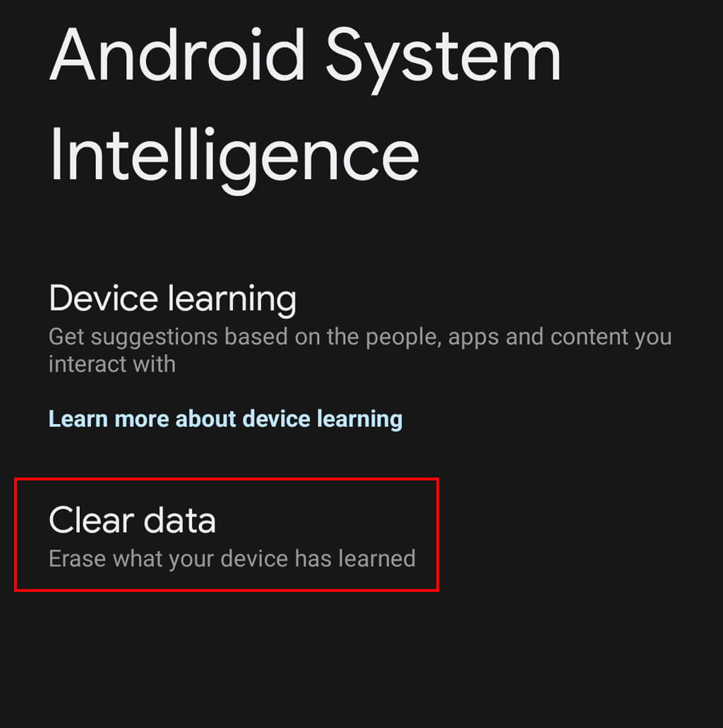 You can also clear any data that Android System Intelligence has collected about you. To do so: