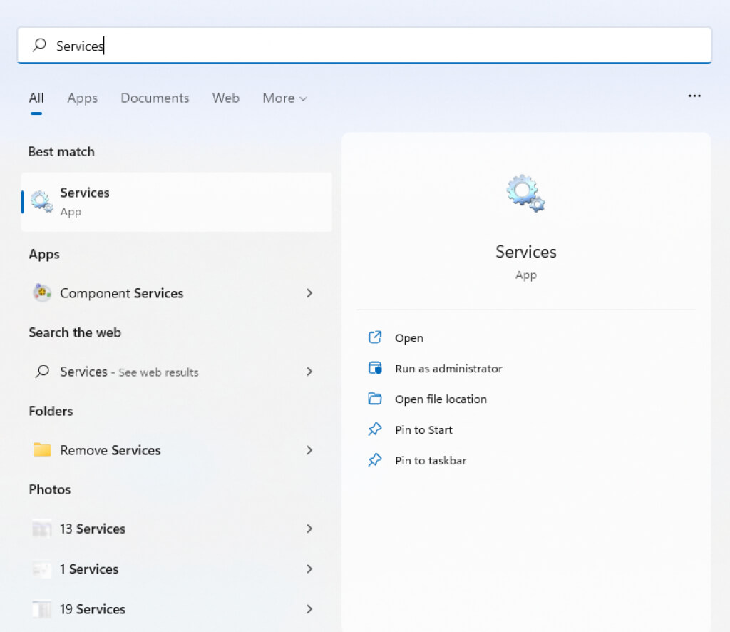 - To disable the AMD External Events Utility, search for the Services app in the Start Menu.