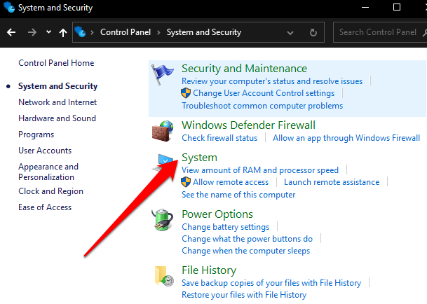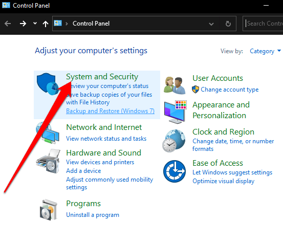 - Open Control Panel and select System and Security.