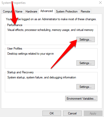 - In the System settings popup, select **Settings** under the **Performance** section.