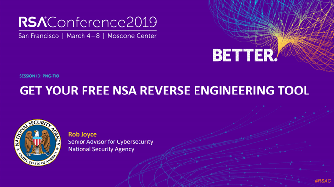 By the way, it’s pronounced Ghee-dra. It was released to the public for free and as open source on March 5th, 2019, at the RSA Conference in San Francisco. You can even view the Ghidra presentation notes from Robert Joyce, Senior Advisor to the National Security Agency (NSA).