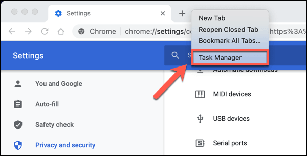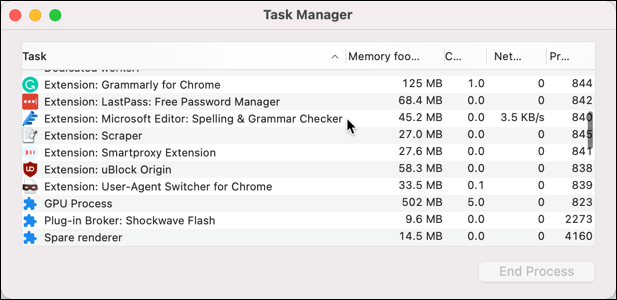 You can also use the built-in Google Chrome Task Manager to monitor each individual internal Chrome process. This will allow you to identify the specific component in Chrome, such as a rogue plugin, that’s causing issues.