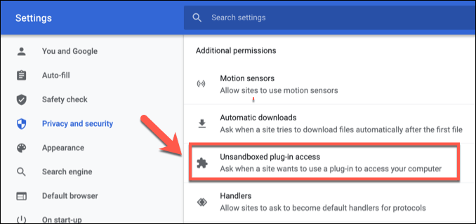 - Scroll down, then select **Additional permissions** > **Unsandboxed plugin access**.