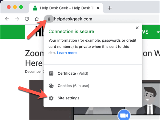 - You can do this for certain pages by selecting the **lock icon **next to the address URL bar, then selecting the **Site settings **option.
