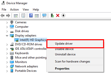 Right-click the Start button and select Device Manager. Expand the Display adapters section and right-click on your graphics card’s adapter and select **Update Driver **or Update Driver Software.
