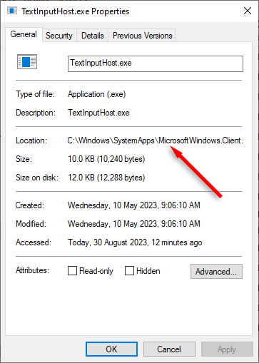 You can also verify that TextInputHost.exe is authentic by checking its location in your system. It should be found in either: