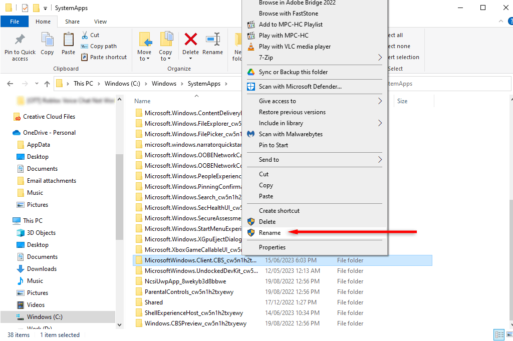 Note: This may only be a temporary fix, depending on future Windows updates. When you perform a system update, Windows might automatically rename or reinstall the folder, meaning you’ll have to perform these steps again. It isn’t possible to permanently uninstall the process.