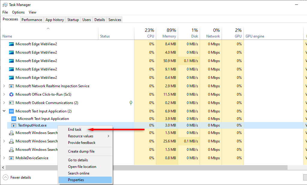 - * Open the Task Manager then right-click the TextInputHost.exe process.