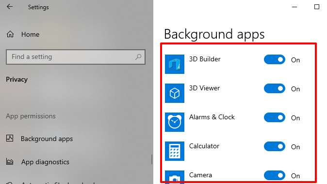 - Look through the background applications and toggle off apps that you barely use.