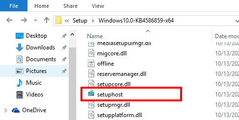 - Go to the folder (Local Disk (C:) > $WINDOWS.~BT > Sources) containing the setuphost.exe file.