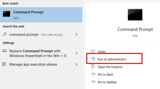 - Type command prompt in the Windows Search box and click Run as administrator.