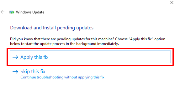 - If the Windows Update troubleshooter finds a fault preventing your computer from installing an update, click **Apply the fix** to resolve the problem immediately.
