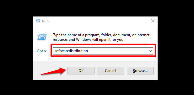 - Next, type softwaredistribution into the dialog box and click OK.