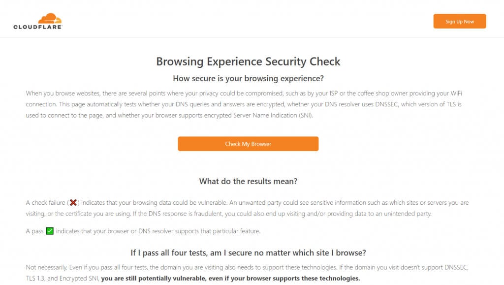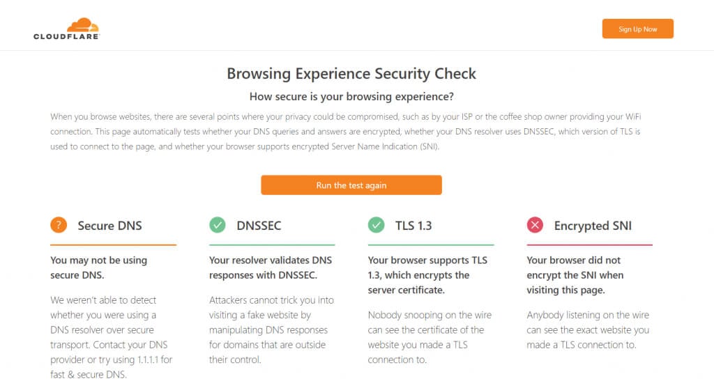 - To check whether your browser is using secure DNS or not, head to Cloudflare’s security check tool.