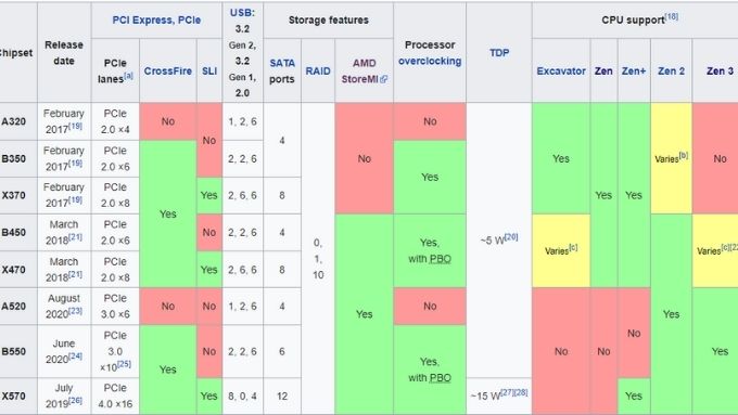 There are currently eight chipsets, and any current AMD AM4 socket motherboard will be equipped with one of them. Consider this table from Wikipedia:
