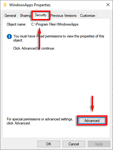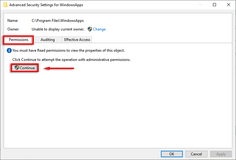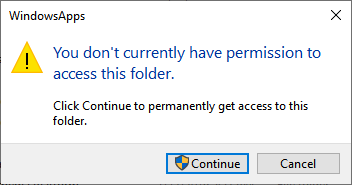 - * Navigate to the WindowsApps folder in File Explorer. If you try to delete it, you will find that you do not have permission to access or delete it.