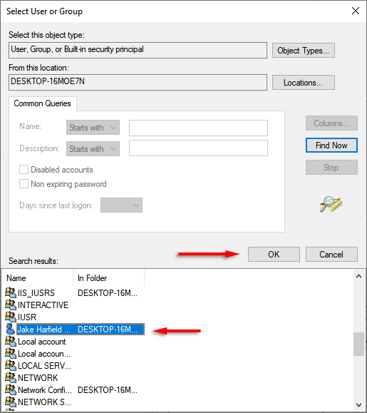 - Scroll down and find your User Account.