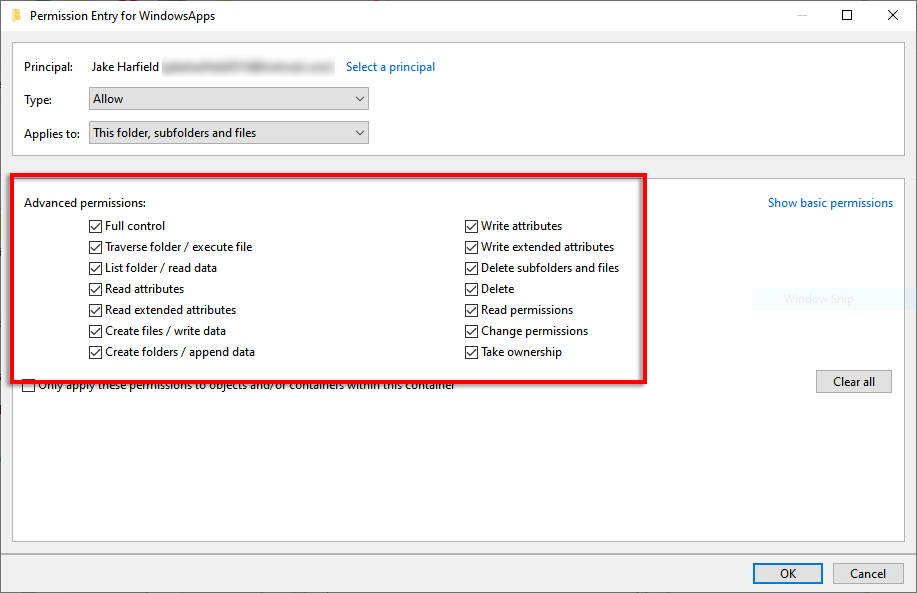 Taking Ownership of the MSIXVC Folder