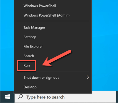 - If Windows Update isn’t working, right-click the Start menu and select **Run**.