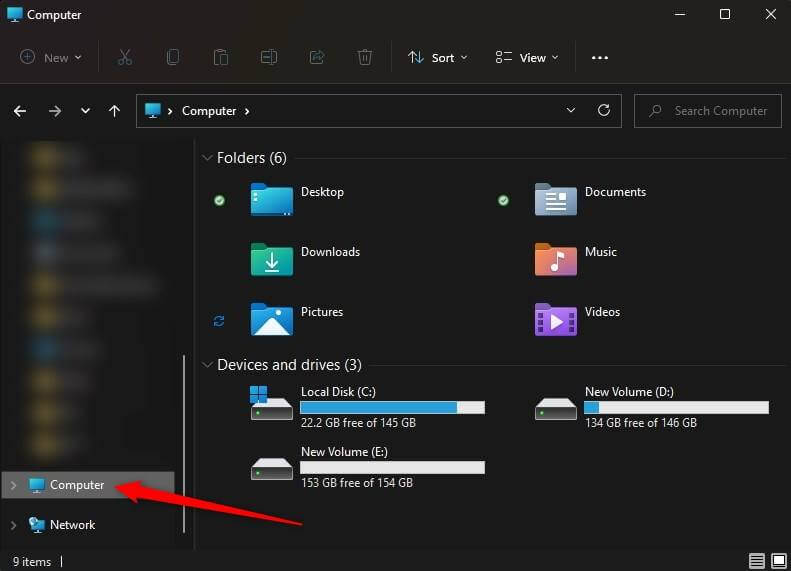 - Launch the File Explorer and go to This PC (or Computer on Windows 11).