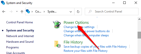 - Open the System and Security menu and select Power Options.